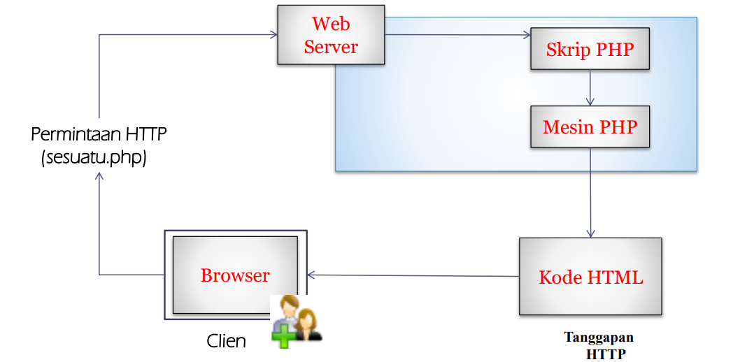 => Menurut dokumen resmi PHP, PHP merupakan singkatan dari PHP Hypertext Preprocessor. Ia merupakan bahasa berbentuk skrip yang ditempatkan dalam server dan diproses di server. Hasilnyalah yang dikirimkan ke klien, tempat pemakai menggunakan browser.